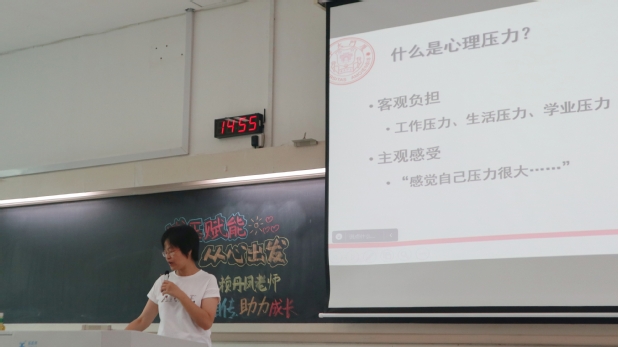 从同学们在会场不时发出的不由自主笑声回应中,本场心理健康讲座达到了帮助同学学会客观认识看待压力,有效舒缓压力,变压力为动力,提升自身心理综合能力的预期目的。