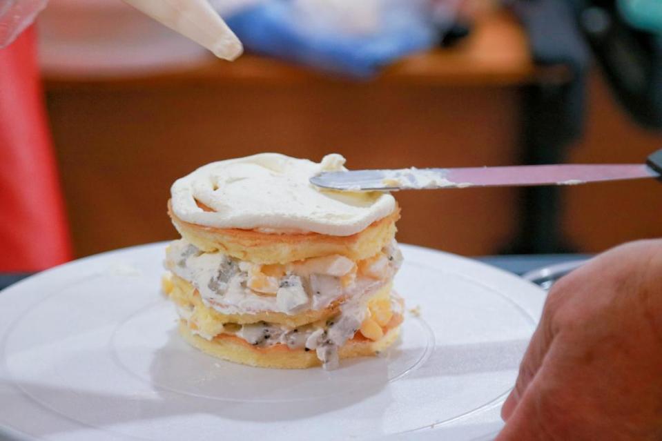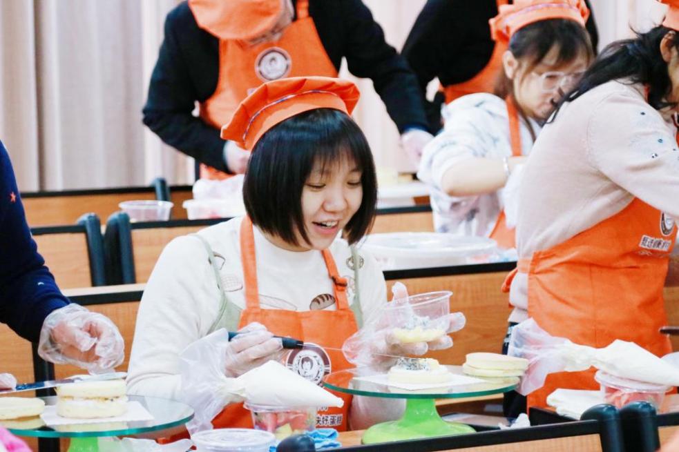 蛋糕店的师傅为大家详细讲解了制作蛋糕的步骤,大家充分发挥动手能力和想像力装扮属于自己的蛋糕,通过抹奶油、装饰水果,对蛋糕进行更丰富、更深层的加工,赋予蛋糕以独特美丽的外形。
