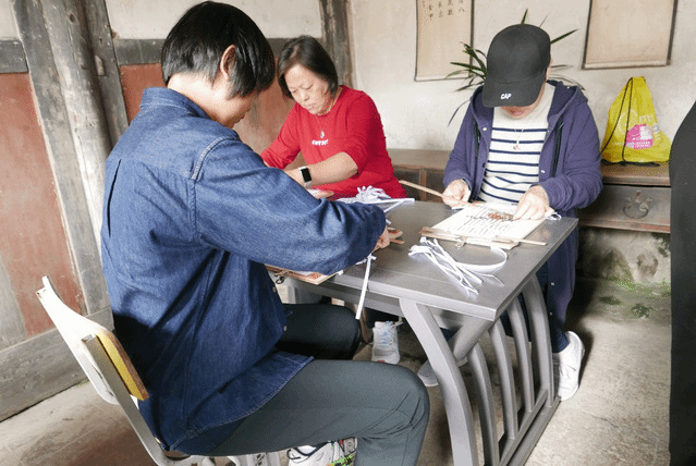随后,我们来到了位于永春县吾峰镇侯龙村的侯龙书院,这是永春县仅存的仍保护完好的古代书院。2002年1月,侯龙书院被列为县第四批文物保护单位。2016年,侯龙书院荣获“第一批福建省水文化遗产”称号。2018年10月,它被列为福建省第九批文物保护单位。书院由竹园斋和桂轩两书斋构成,已有300年的历史。通过导游的介绍,我们了解了园林式书院的历史和独特的文化价值,并了解了侯龙陈氏的族谱。在书院中,大家积极投入对于永春非遗纸织画的制作当中,在师傅的指导下,大家埋下头认真地制作,在手工实践中感受中国传统文化的魅力,看着自制的纸织画完成后装裱入框,大家满心欢喜,收获满满。