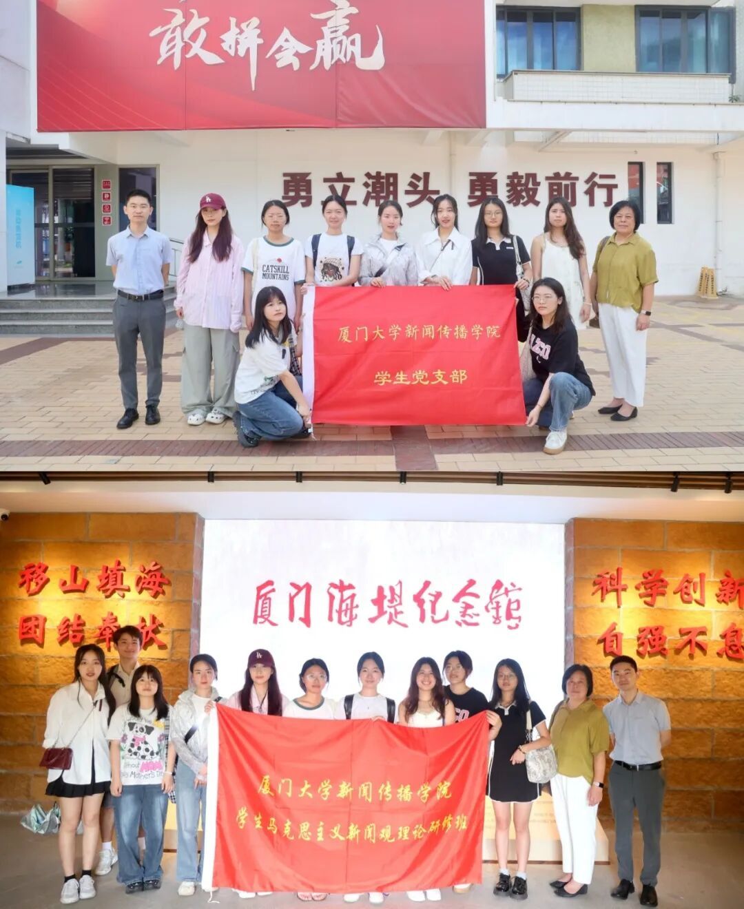 为推动党纪学习教育走深走实,党员理想信念教育和廉洁教育见行见效,用好厦门市红色教学资源,引导党员增强历史自觉、强化纪律意识,6月28日至7月7日,新闻传播学院“马新班”先锋党支部、2023级专业硕士第二党支部联合开展“感悟红色鹭岛,奋进一流征程”主题系列活动,充分运用“线上+线下”两个载体,组织师生党员和入党积极分子前往厦门经济特区纪念馆与厦门海堤纪念馆等地参观研学,并结合党纪学习教育开展专题线上研讨。