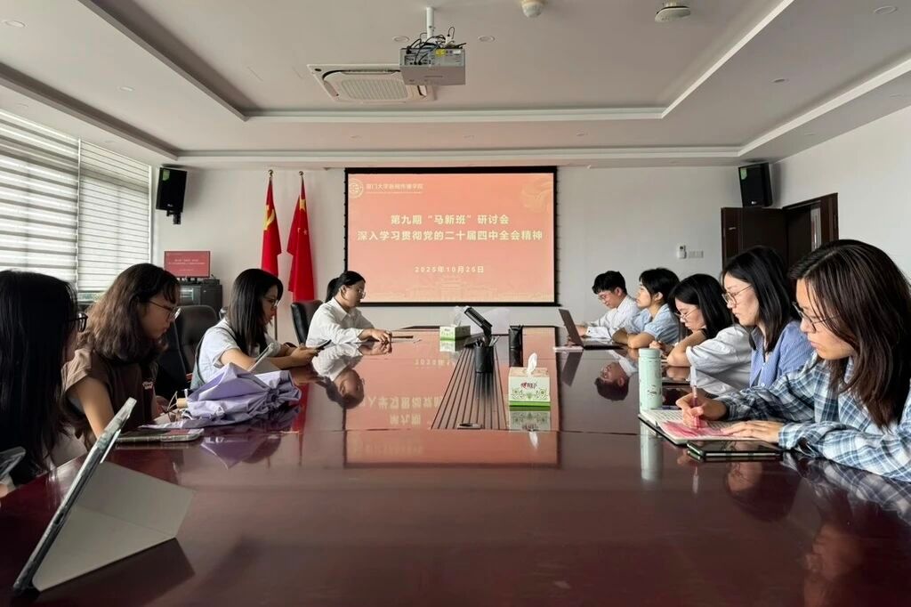 10月20日至23日,中国共产党第二十届中央委员会第四次全体会议在北京举行,全会审议通过了《中共中央关于制定国民经济和社会发展第十五个五年规划的建议》。10月25日,新闻传播学院“马新班”围绕“学习贯彻党的二十届四中全会精神”主题开展专题学习,第九期学员参与本次集体学习。与会学员原文学习了公报核心内容,并围绕党的二十届四中全会精神和马克思主义新闻观的时代价值,展开了深入的思想碰撞,现场学习氛围浓厚。
