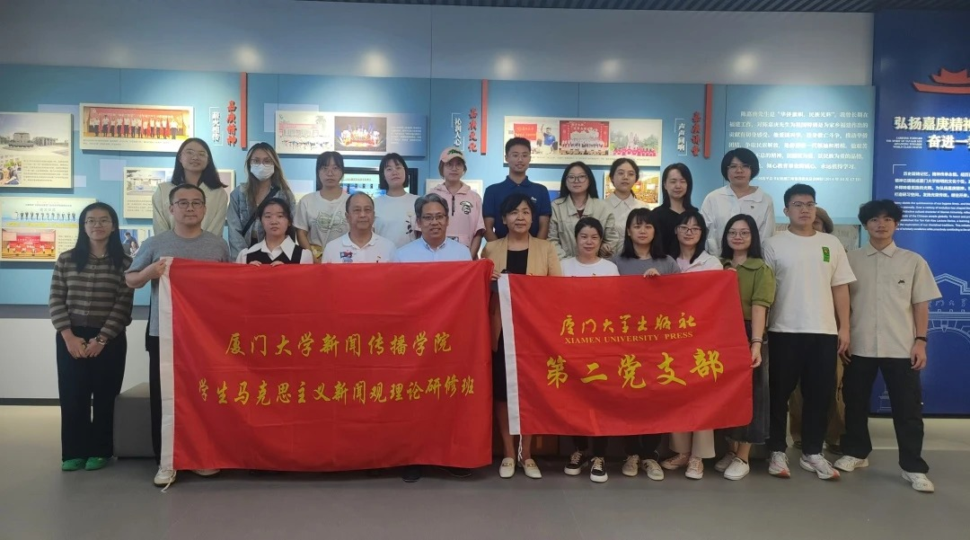 在陈嘉庚先生诞辰150周年之际,厦门大学重新布展的“陈嘉庚与厦门大学”纪念展馆开馆。10月28日,厦门大学出版社第二党支部全体党员与“马克思主义新闻观理论研修班”先锋党支部成员共同参观“陈嘉庚与厦门大学”纪念展馆,现场学习嘉庚先生作为“华侨旗帜,民族光辉”的伟大事迹,深入交流对嘉庚精神的理解和感悟。