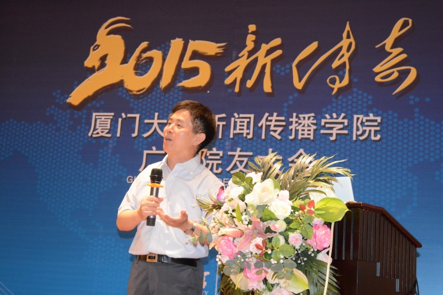 朱健强老师首先代表学院致辞,他回顾了厦大新闻传播学科30年来建设办学、发展壮大的概况,特别是2007年学院成立以来在学科发展、人才培养和学术研究等方面取得的成果。朱老师表示,广东地区特别是广州和深圳,一直是厦大新闻传播毕业生最重要的就业聚集地,尤其是广州广告界、4A公司活跃着众多杰出的厦大广告人才,他们在业界创造出不俗的成绩,为学院争得荣誉。面对当前炙手可热的“互联网+”与移动互联网新技术潮流,朱老师敏锐指出,传统的新闻与传播学科在研究与教学上面临新的挑战与机遇,厦大新传必须把握这个难得的机会,培养出适应互联网时代的新型传播人才,才能在未来院校竞争中立于不败之地;也希望广东院友发挥业界前沿的实践优势,在互联网+传播潮流下创造出更多新传奇。