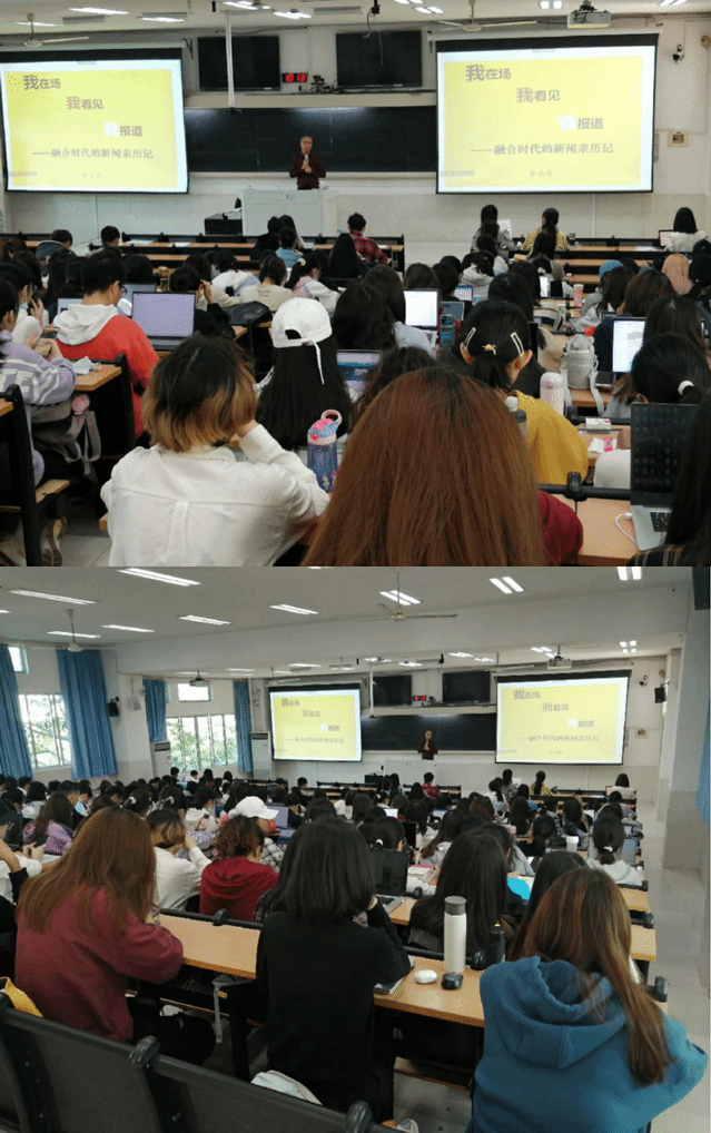 11月11日上午,我院院友、《厦门晚报》副总编辑查本恩来到《新闻学概论》的课堂,以《我在场 我看见 我报道》为题,结合此次厦门日报社抗击疫情的现场报道情况和自己追寻热爱的新闻事业的经历,为学弟学妹们带来了一场生动又充满意义的分享。