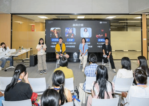 在正式活动中,中南万象组织部负责人陈天向参访师生详细介绍了公司的业务布局、团队架构、发展历程及人才培养体系。随后圆桌座谈环节,在该企业实习生、厦大新闻传播学院2021级本科生罗怡文的主持下,中南万象组织部负责人陈天、高级合伙人黄欣、人才发展策略专家左璟辰等三位企业管理层及资深员工受邀出席,与参访师生展开深度对话。各企业嘉宾结合自身职业经历,围绕职业选择、面试技巧、员工成长晋升通道、职场社交及工作生活平衡等学生关注的话题逐一解答,为同学们带来了极具实用性的职场与成长经验分享。