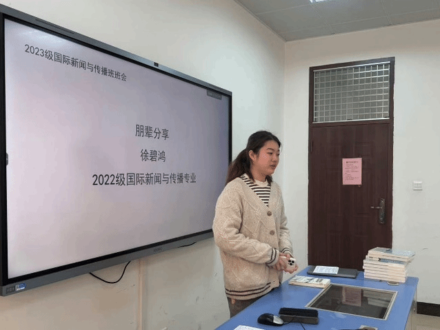 随后,2022级国际新闻与传播专业徐碧鸿学姐作经验交流。她结合自身学习经历,分享了专业课程学习、学术研究方法和实习实践中的宝贵经验,并鼓励学弟学妹们勇于探索,不断提升综合能力。