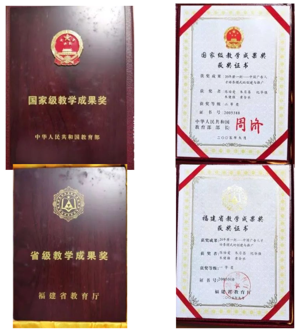 厦大团队1983年开创了“广告学人才培养模式”,30多年来沿着“量的发展——质的提升——国际接轨”的路子发展,对我国近百所高校的广告教育产生了巨大的影响及借鉴作用,此项“培养模式”成果2005年10月获得“福建省本科教学优秀成果一等奖”及国家级奖项“国家本科教学优秀成果二等奖”。这是迄今为止该学科设立的唯一的国家级奖项的最高奖,代表了厦大广告学科在同类学科中的最高地位。