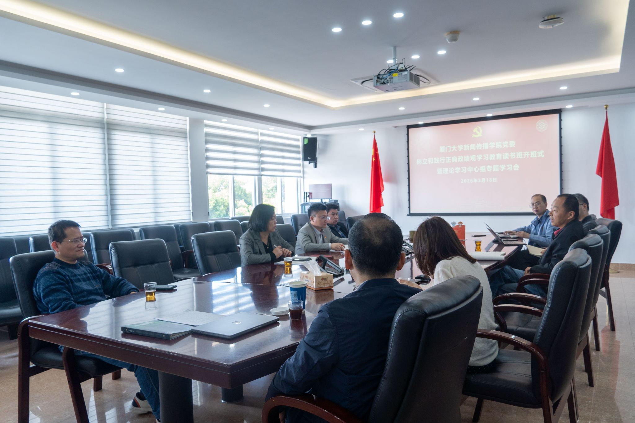 3月18日上午,新闻传播学院党委在至善楼411会议室召开党委理论学习中心组学习会暨正确政绩观读书班开班式。学院党委书记张胜强主持会议并做动员讲话,学院党委委员、处级领导干部参加会议。会议指出,开展树立和践行正确政绩观学习教育,是党中央提出的重要政治要求,也是学院落实“创一流学科、育一流人才、做一流贡献”发展理念,推动“十五五”开好局、起好步的必然要求。会议强调,全院党员领导干部要高度重视学习的重要性,带头学,...