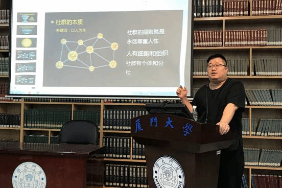 2017年10月25日晚19点,由新闻传播学院研究生会主办的新传论学术沙龙第六期厦门大学图书馆举行。曹秋石老师带来社群的IP化养成之路的分享。曹秋石老师从社群的本质与核心、如何与用户和粉丝建立联系、如何进行品牌化与IP化运营以及如何延长社群活跃周期等多个角度进行了讲解,...