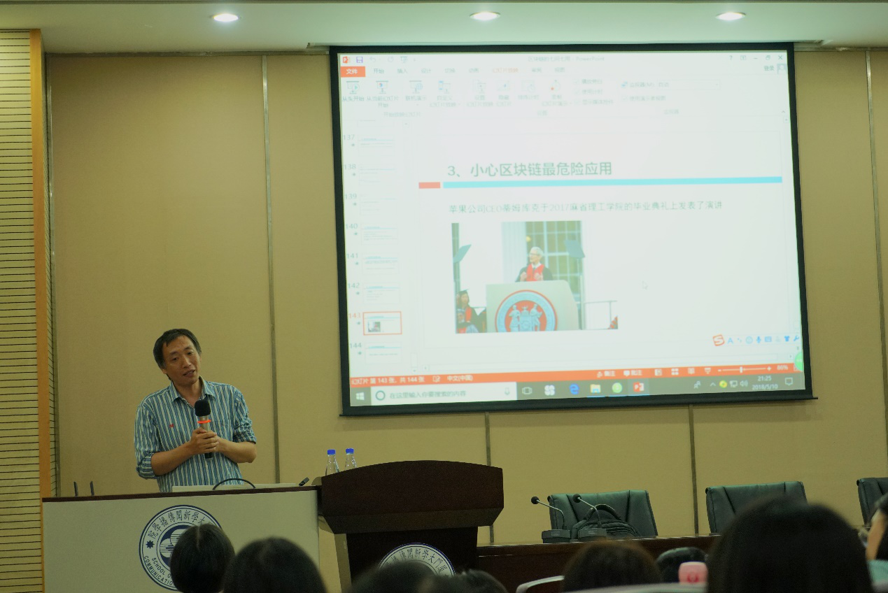 2018年5月10日晚19:00,在南光二四楼报告厅举办的新闻传播学院研究生学术沙龙上,新闻传播实验中心主任洪强老师为同学们带来了一场精彩的关于区块链的分享。洪强老师认为:首先应肯定的一点,新技术是社会发展的根本动力,...