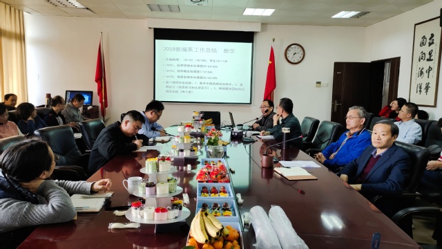 2020年1月6日下午,我院在新闻楼411召开期末全院教职工大会。会议由余清楚院长主持。首先由各个系领导和新闻传播实验中心主任依次做2019年度总结和2020年工作计划汇报。新闻系苏俊斌、广告系曾秀芹、传播系李展代表学系依次汇报,...