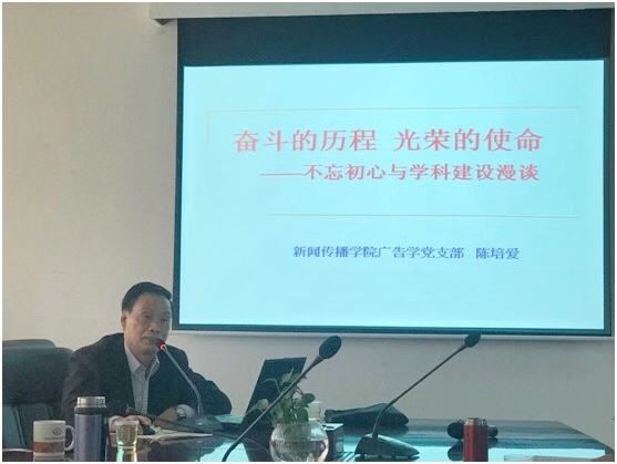 12月27日下午,新闻传播学院广告教工党支部邀请了陈培爱教授,与2018级广告学硕士党支部共同组织开展以“奋斗的历程,光荣的使命——不忘初心与学科建设漫谈”为主题的分享会。分享会由学院广告教工党支部书记陈素白主持,...