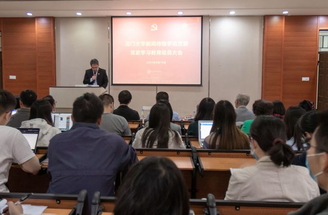 4月19日下午,新闻传播学院党史学习教育动员大会在南光二206召开。厦门大学党史学习教育第四指导组副组长高斌、厦门大学基层党建工作联络员潘宝柱、新闻传播学院党委书记曾铮、院长余清楚、学院特邀党建组织员许清茂、...