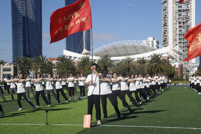 秋日迟迟,绿意阑珊。11月17日上午,厦门大学2024年教职工八段锦、健身操集体展演和趣味运动会在演武田径场举行。学院教师代表在运动场上挥洒汗水,展现出我院团结拼搏、乐观向上的活力风采。本次运动会精心设置了集体跳绳、...