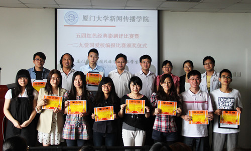 5月4日,新闻传播学院五四红色经典影剧评比赛暨“一二・九”爱国爱校编报比赛颁奖仪式在院楼三楼报告厅举行。学院党委副书记林盛铨、叶虎,团委书记戴蓥,团委副书记胡泽红、辅导员钟书库,评委老师熊慧、获奖同学以及部分学生代表参加了本次颁奖仪式。...